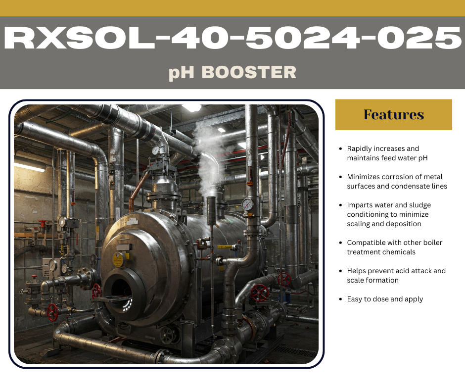 Boiler/Cooling Tower Alkaline Builder RXSOL pH Boosters are liquid alkaline formulation, used as alkalinity source for boiler feed water. It is synergized with properties of pH boosting and water conditioning.